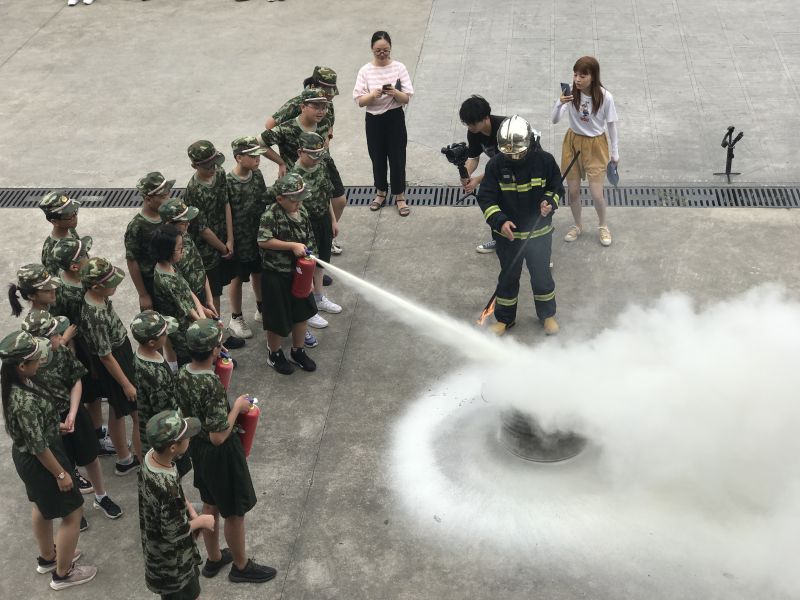 在灭火实战体验环节,同学们摩拳擦掌、跃跃欲试,在现场消防员的指导下饶有兴致地体验了灭火器的使用。大家纷纷表示,在锻炼身体和磨练意志的同时还学到了国防、人防和消防知识,增强了安全应急能力。