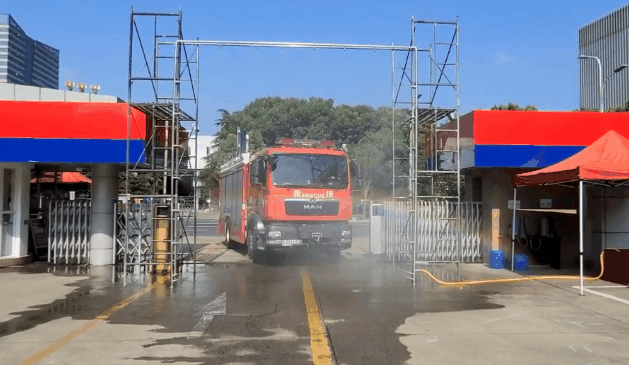 各支队大力推广使用利用消防工程元件进行组装的简易洗消装置,对各型车辆、消防装备及人员进行洗消。