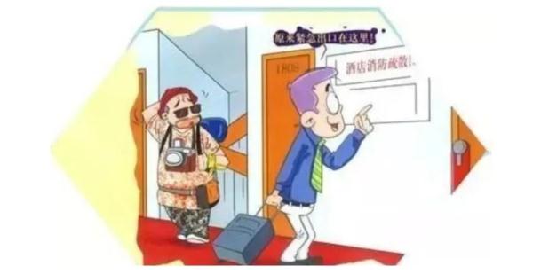 住进酒店,要牢记疏散楼梯、安全出口,以及报警器、灭火器的位置。一般情况下,酒店房间门后会有平面图,标明房间和消防通道的位置。