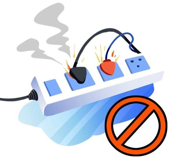 切勿在房间内使用电饭煲、电磁炉等大功率电器。用电水壶烧水要确保壶中水量充足,并且在水沸腾后及时关闭电源,切勿干烧。