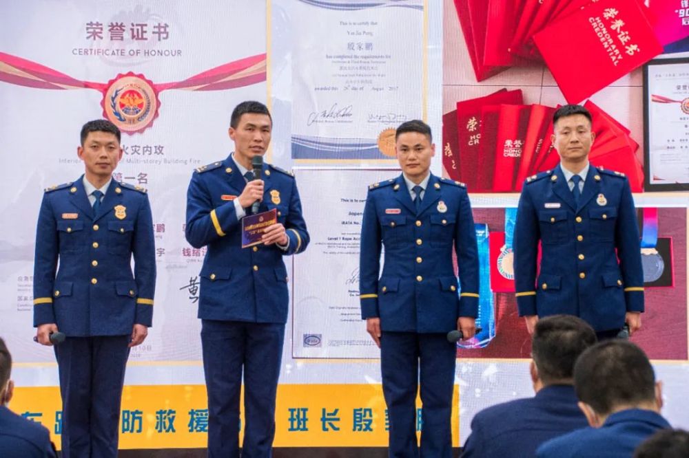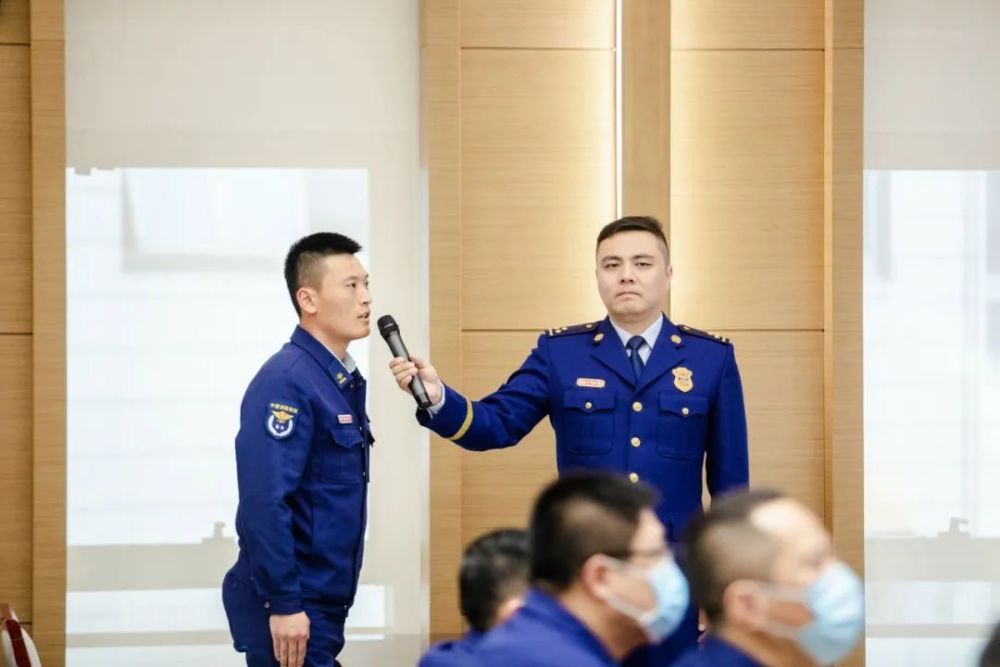 常州市武进区府东路消防救援站滕振讲述了队站立足全灾种、大应急定位,转变思维理念,创新组训方式,超40%队员取得专业救援资质,向专业化要战斗力的奋斗历程。队站班长魏凯、殷家鹏分享了参加专业培训和技能竞赛的经验体会。