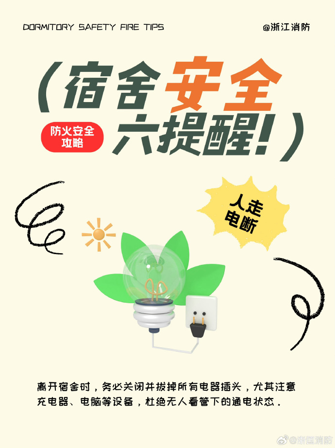秋季学期开启,新的宿舍生活拉开帷幕。宿舍作为各位同学们的第二个家,安全至关重要。“蓝朋友”带来宿舍安全防火六提醒,涵盖用电、用火等方面,为大家的宿舍生活保驾护航。